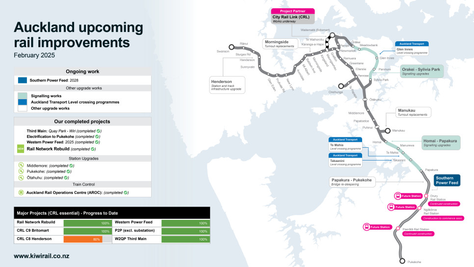 KiwiRail thanks Auckland commuters, passengers, our rail corridor neighbours and freight customers for their patience with these disruptions as we safely delivered the huge amount of RNR work needed to modernise the network.
